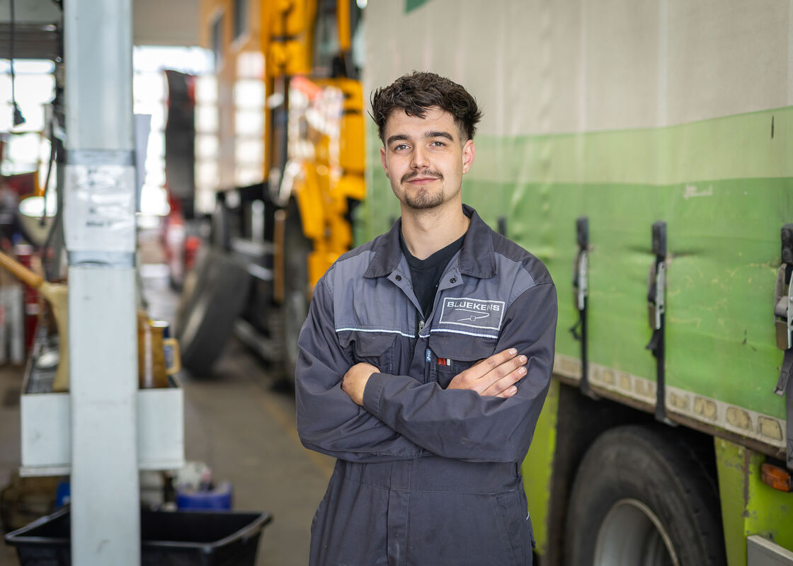 Troy Rijk begon als leerling in de werkplaats van Bluekens Truck en Bus in Goes en groeide in een paar jaar tijd door naar meewerkend voorman.